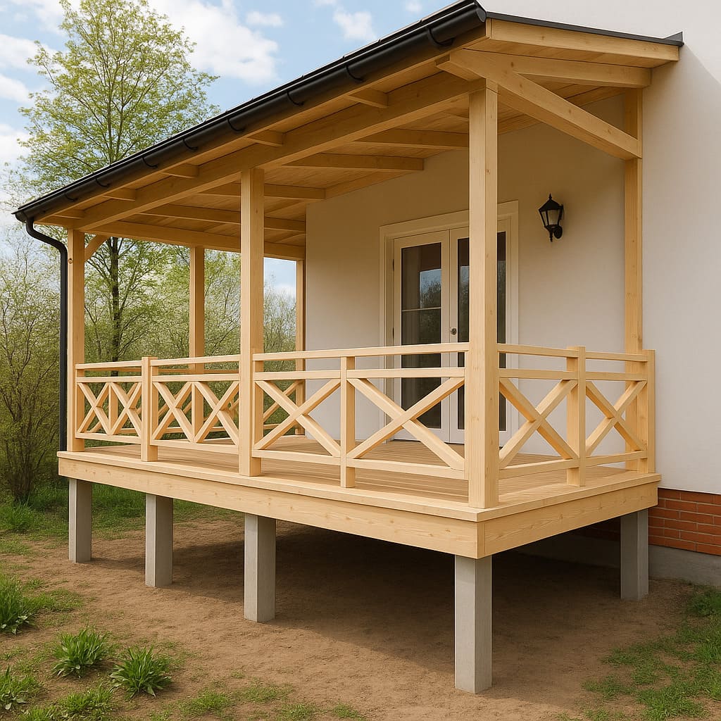 Свайный фундамент позволяет быстро построить террасу или пристройку. Рассчитываем шаг свай, делаем обвязку и защищаем цоколь от промерзания.